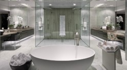 Bodová světla jsou vhodná zvláště do větších koupelen, kdy se tak snadno osvětlí více zón (u umyvadla, nad vanou, u sprchy, u toalety). Navíc u novostaveb, kde bývá rekuperace, jsou vestavná bodová svítidla ideálním řešením do sádrokartonových podhledů. Ať už ale zvolíte větší nebo menší svítidla, vždy platí, že intenzitu osvětlení ovlivňuje výška stropu a barva obkladů. Tmavá barva světlo částečně pohlcuje.